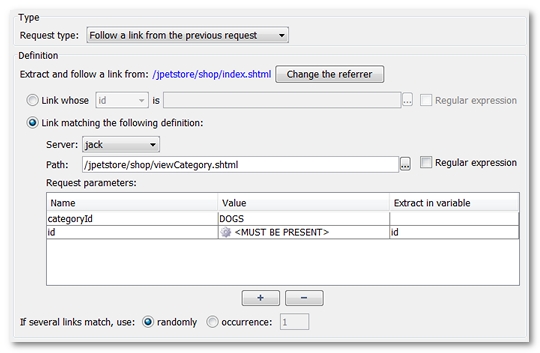 Depending on the case, Neotys Design Studio uses either variable extractors on the dynamic parameters or link/form extractors to handle dynamic parameters.