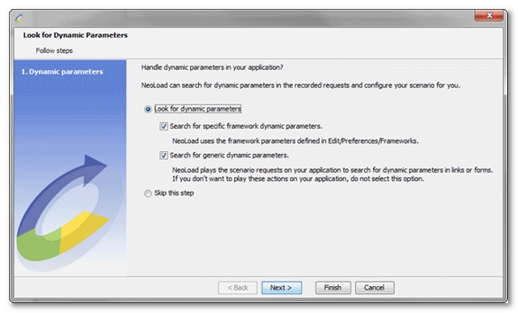 You can search for dynamic parameters either after a recording (in the Post-Recording wizard) or for each Virtual User.