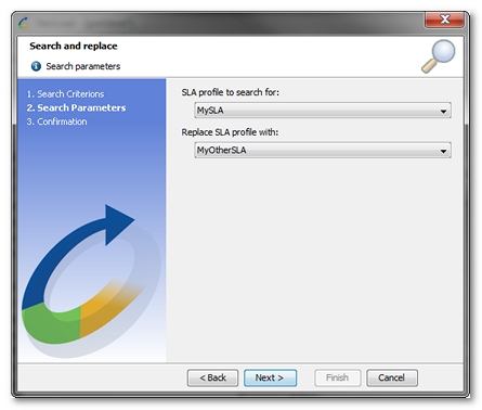 - Select the SLA profile to search for and the Replacement SLA profile.