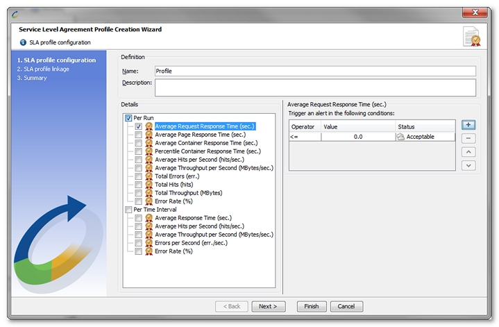- Click + (plus) to open the New SLA Profile Wizard.