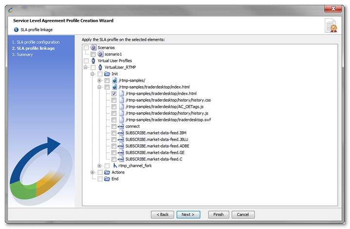 - Select the SLA profile for the elements. Select the elements with the Select list button, and apply it with the Link the SLA Profile.