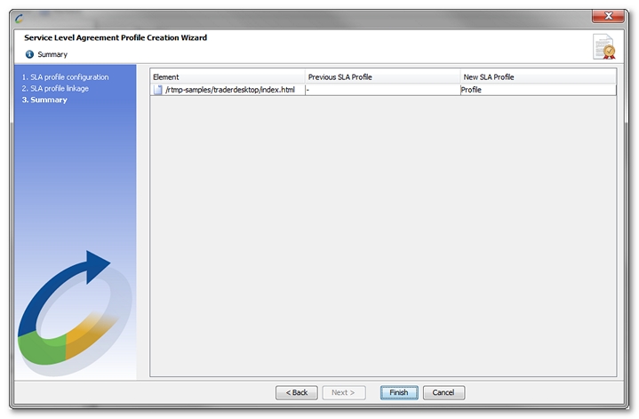 - A summary of the links between configuration elements and SLA profiles is displayed.