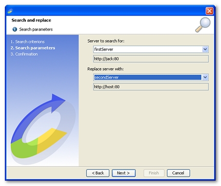 - Select the Server to search for and the Replacement server.