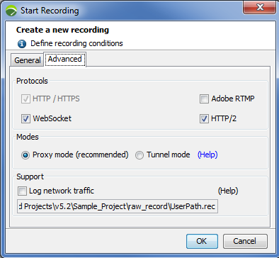 When asked by Neotys Support, check the Log network traffic option before your recording to make sure raw data recorded is included in the project being exported to Support.