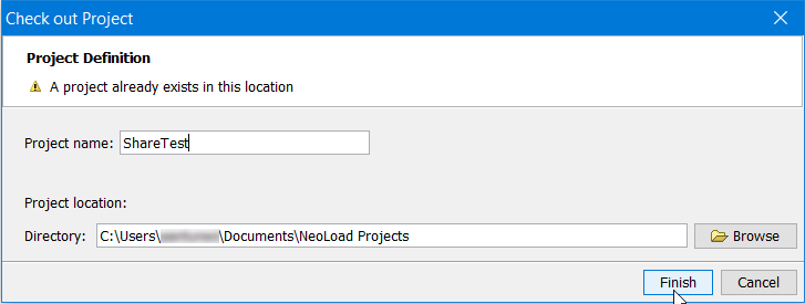 The project to check out must be selected in the list. Once selected, Neotys Design Studio 5.5 makes it possible to give it a local name. The name can be different from the project collaborative name. By default, the suggested local name is the same as the remote one.