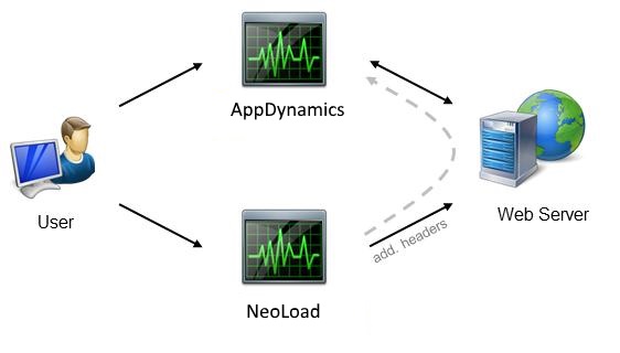 The Neotys Design Studio module for AppDynamics sends specific information to AppDynamics during a Neotys Design Studio test. It adds additional information to the HTTP headers so that AppDynamics can list the transactions initiated from Neotys Design Studio.
