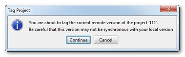 To tag a project, the Share > Advanced > Tag Project command must be chosen. Neotys Design Studio instantly displays a warning message about the version involved by the process.