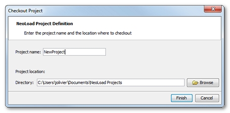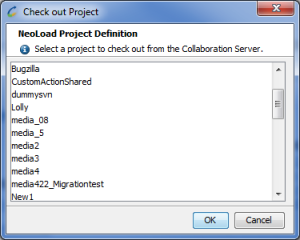 Select from the list the project you want to check out. Once selected, Neotys Design Studio 5.5 makes it possible to give it a local name. The name can be different from the project collaborative name. By default, the suggested local name is the same as the remote one.