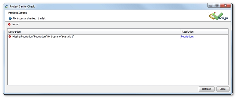 The Project Sanity Check wizard goes through the organization of a project. When consistency issues are detected, it displays a list of warnings and errors which help ensure the quality of the project after: