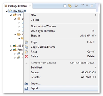 In Eclipse, a right-click on the Java project gives access to the Export command.