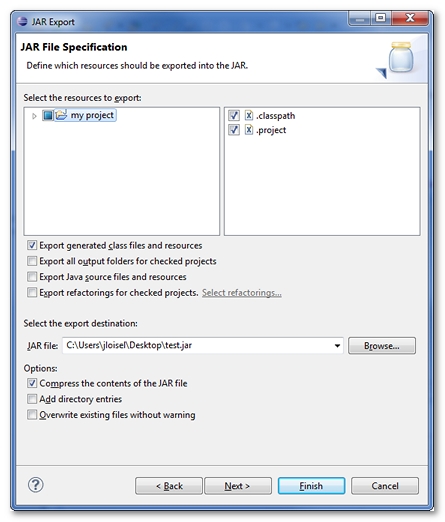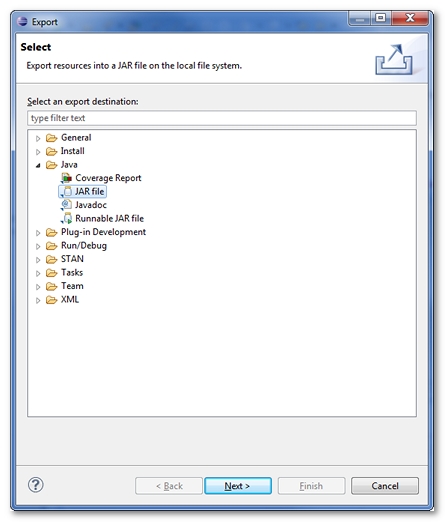 In the JAR Export dialog box, it is necessary to Select the export destination.
