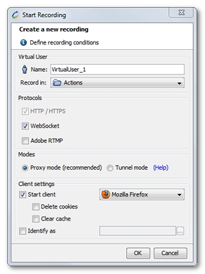 In Neotys Design Studio, a click on the Start Recording toolbar button displays the Start Recording dialog.