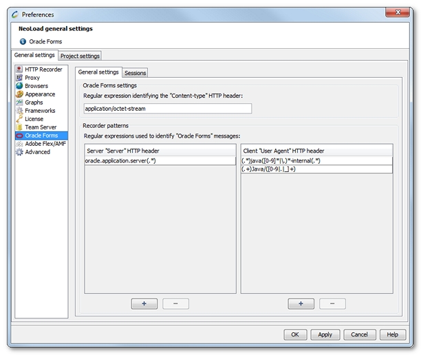 Care should be taken in modifying these settings. Any incorrect configuration can cause Neotys Design Studio to wrongly identify Oracle Forms requests.