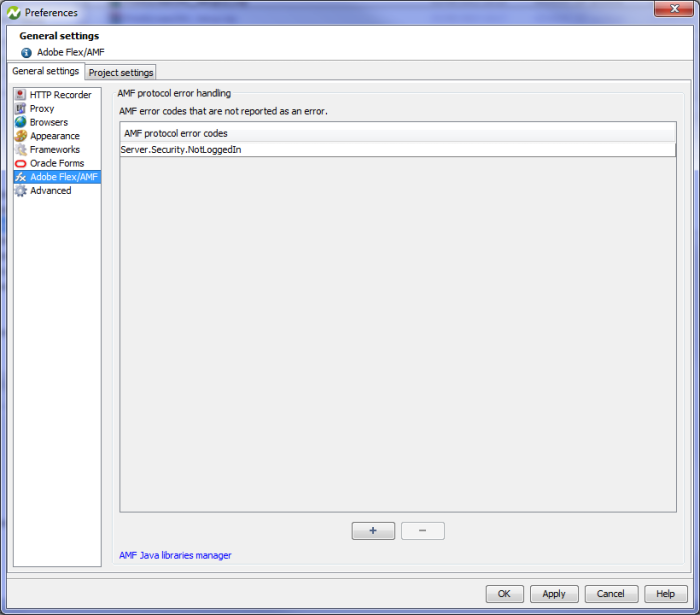 The Adobe Flex global preferences allow defining AMF response error codes that Neotys Design Studio should not treat as errors.