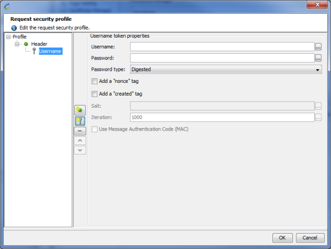 Information: A security token can also be added by right-clicking on the request security profile tree and selecting Add a security token.