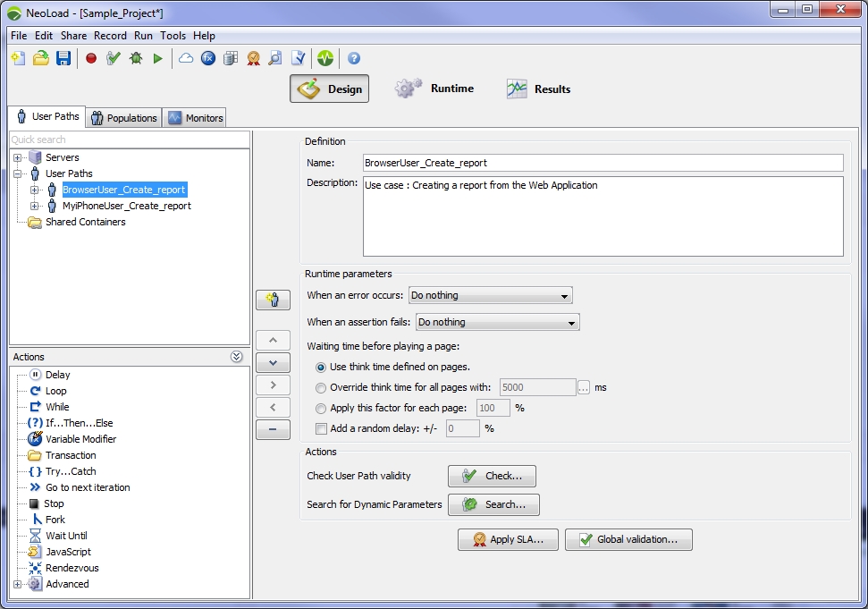 In Neotys Design Studio, User Paths are created and managed in the Design section > User Paths tab.