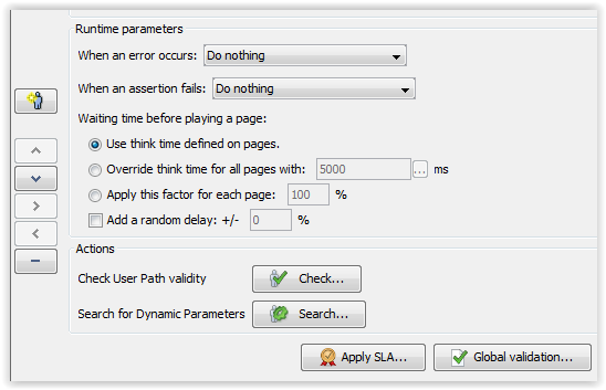 The Global validation mechanism allows setting one or more content assertions on all the responses to requests issued by the selected User Path. This means that application validation rules can be defined quickly and easily for all the User Path requests. For more information, see Global validation.