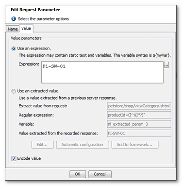 If the Encode value box is checked, the specified value is encoded in MIME application/x-www-form-urlencoded format before being submitted (e.g. spaces are encoded as %20). Clear the check box if the value is already encoded.