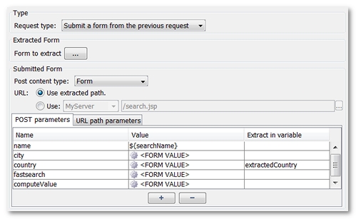 Therefore, the Form Extractor not only allows extracting the dynamic values generated by the server, it also allows using the various form choices in a random manner.