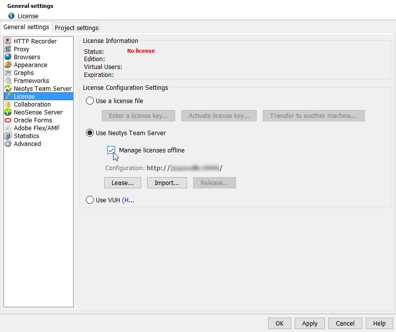 .lse has been generated, the lease response file .rsp must be imported back into NeoLoad within 20 minutes.Choosing Help > License Management > License section gives access to the Manage licenses offline option.