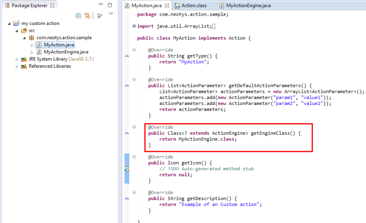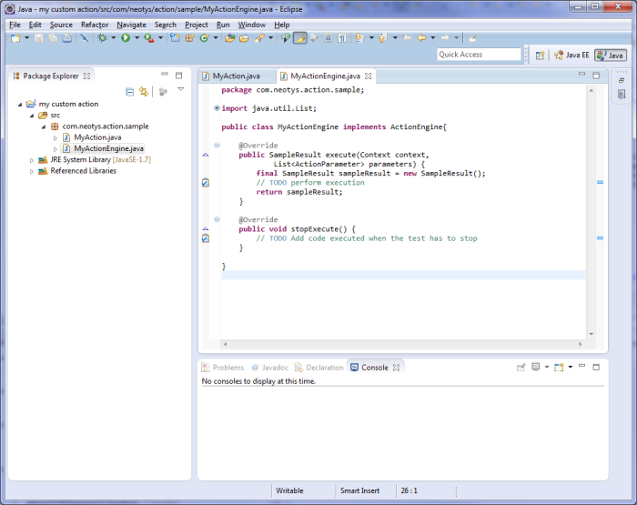 com.neotys.extensions.action.engine.ActionEngine. - You can specify a custom name for the Java class, e.g.