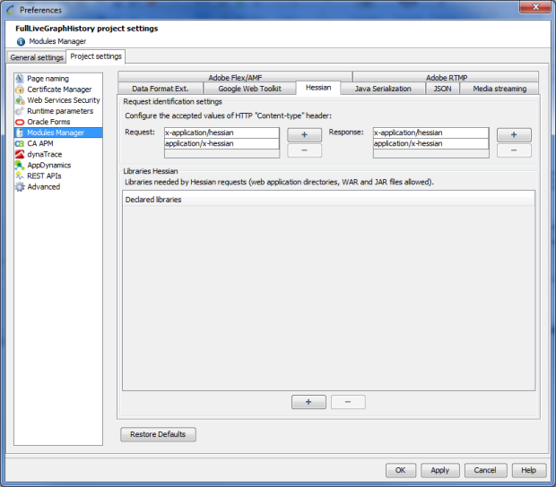 For Neotys Design Studio to decode the Hessian requests and responses into XML, the required libraries must be declared.