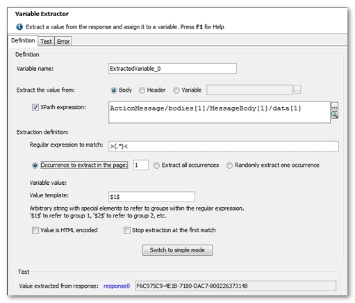 The procedure for extracting variables in XML-format response is almost identical to the standard procedure. For more information about extracting variables in a standard HTTP request, see Variable extractors.