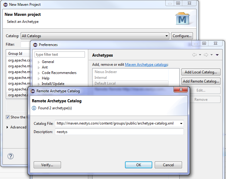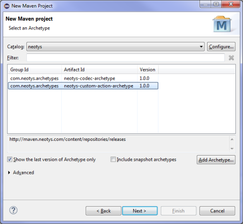 http://maven.neotys.com/content/groups/public/archetype-catalog.xml" in the Catalog File field.neotys in the Description.