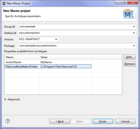 neotys-custom-action-archetype from the archetypes list and click Next >.