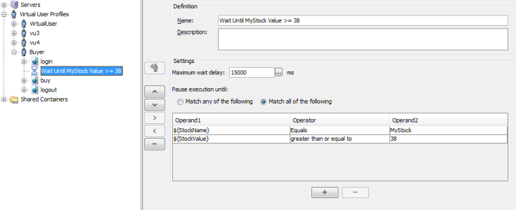 The Wait Until action pauses the current execution thread until certain conditions have been verified.